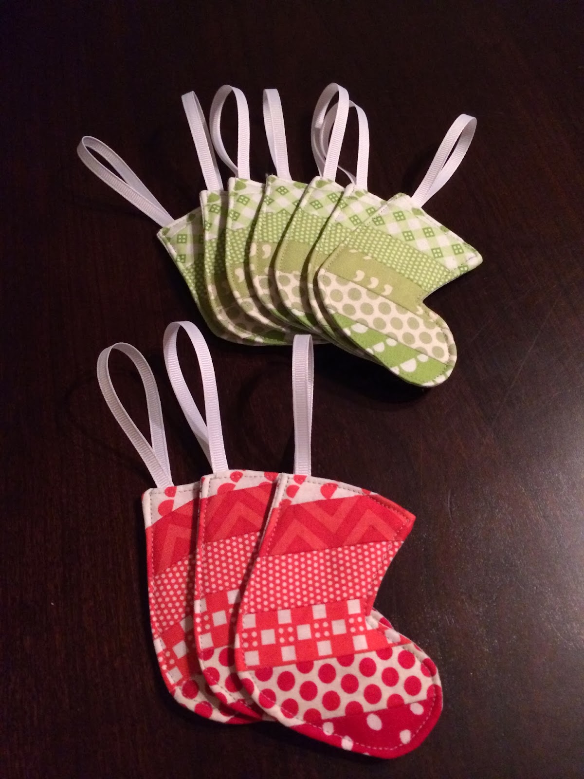 I know I'm a little behind, but right after Christmas we had about a week or so that the kiddos and I were all sick. For Christmas this year, I made little pieced stocking ornaments for the ladies in my quilt guild carpool and also to put in the Christmas cards we sent out this year. I loved how they turned out, and they were so fun to make!